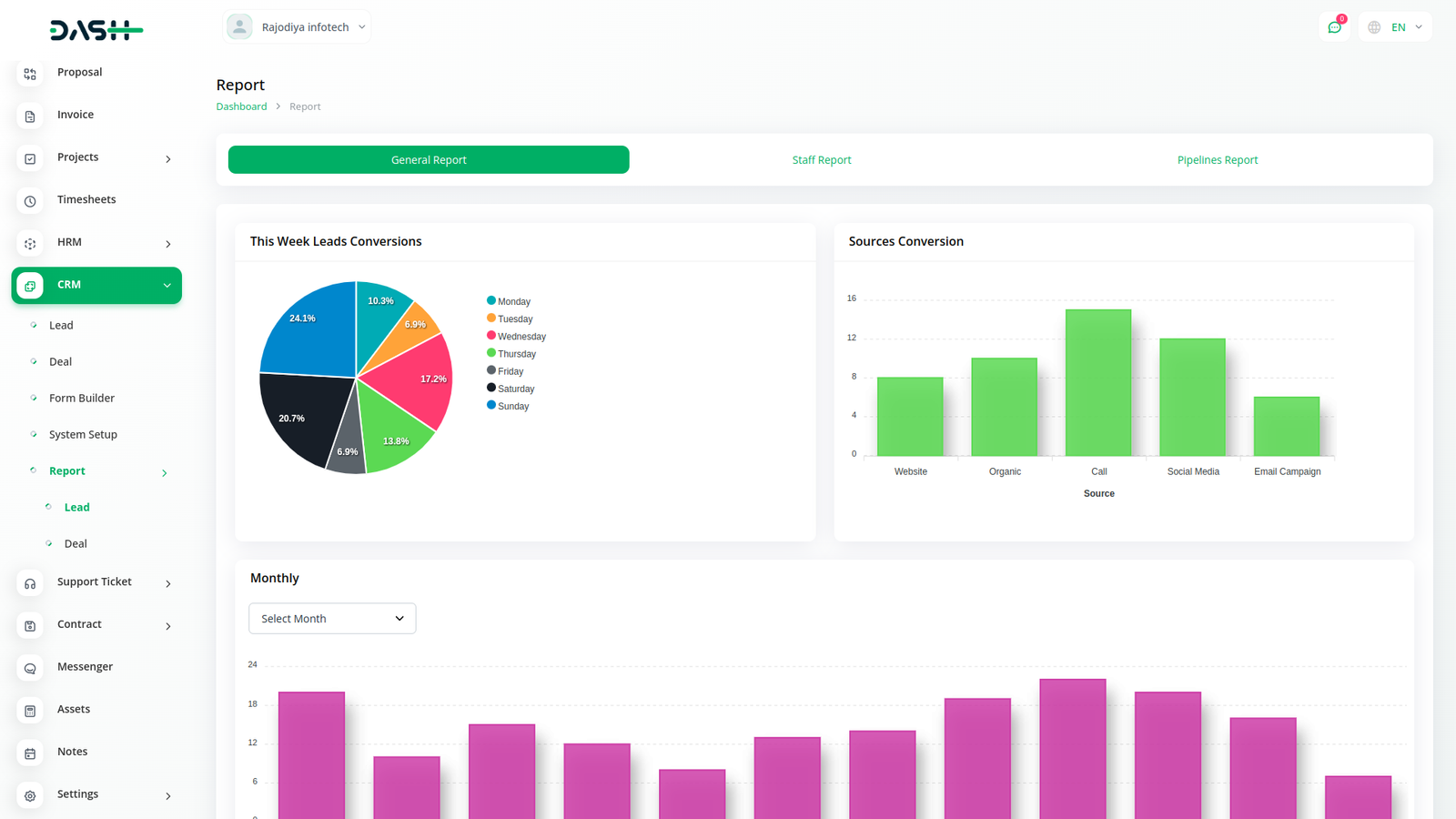 Get an actionable analysis of all your leads, deals, users, invoices, and products - in one interactive dashboard. Create and implement effective business plans, set a maximum number of deals, payment options and do so much more.